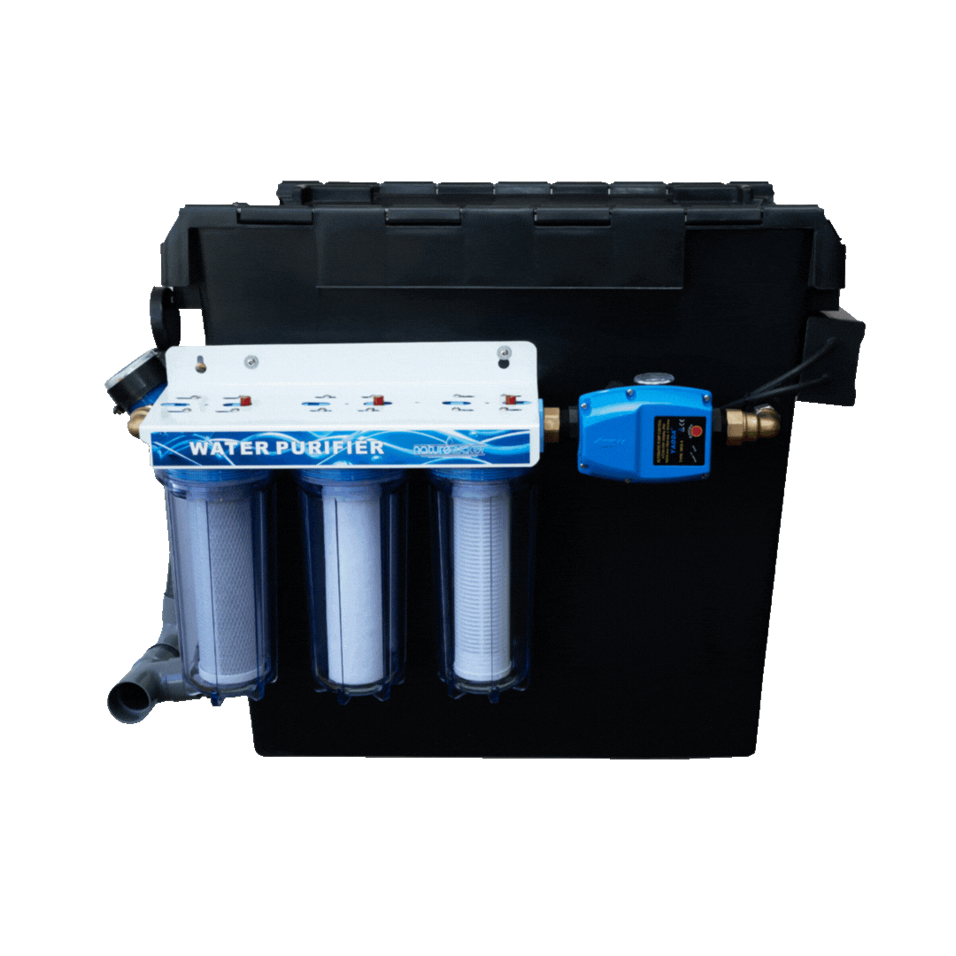 The cartridges purify the recycled water down to 5 microns and allow a UV system to be added (sold separately).